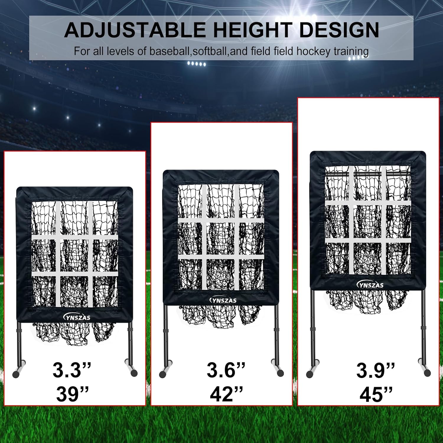 Professional Level Training: The pitching target trainer with 3 adjustable height, provide a variety of realistic match balls to shorten the reaction time of players; Give baseball and softball all players the repetition they need to become a better pitcher.