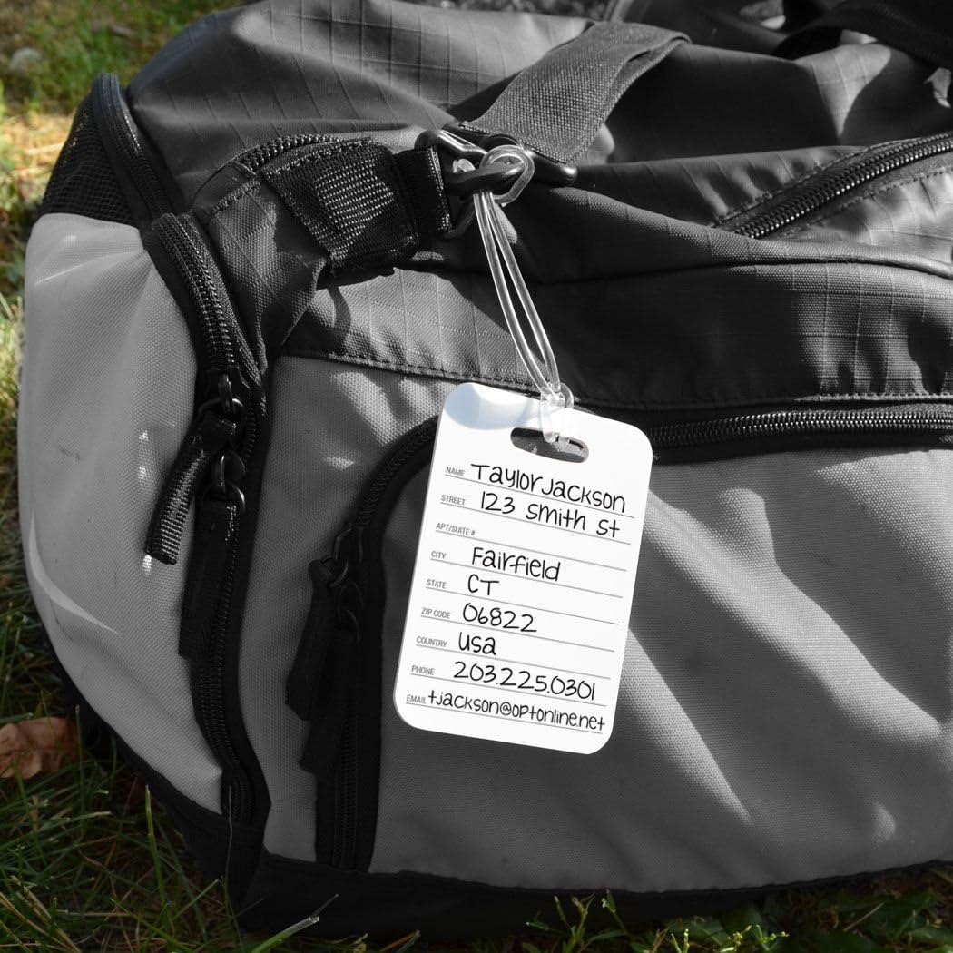 EXTREMELEY DURABLE! Our baseball bag tag is made from a sturdy plastic material making it tough enough to endure the toughest of travel conditions. Easily attach it to your luggage or everyday bag with the strong, long-lasting, clear flexible loop at the top. It is sure to stay on your bag whether it is being tossed around at the airport or rolling around the bottom of the bus on game day.
