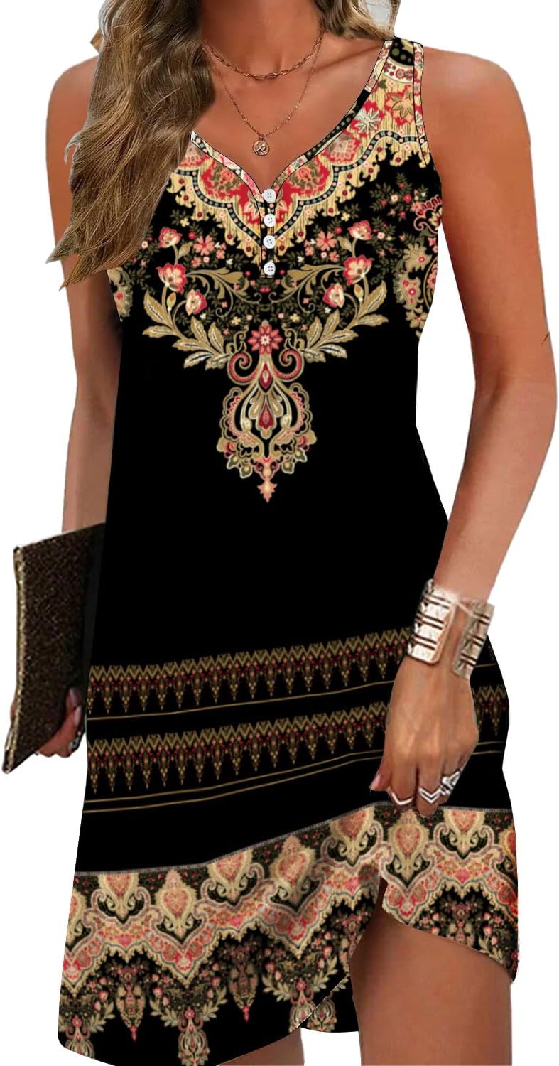 A-Line Elegant Dresses Womens Vintage Sleeveless Boho Dress