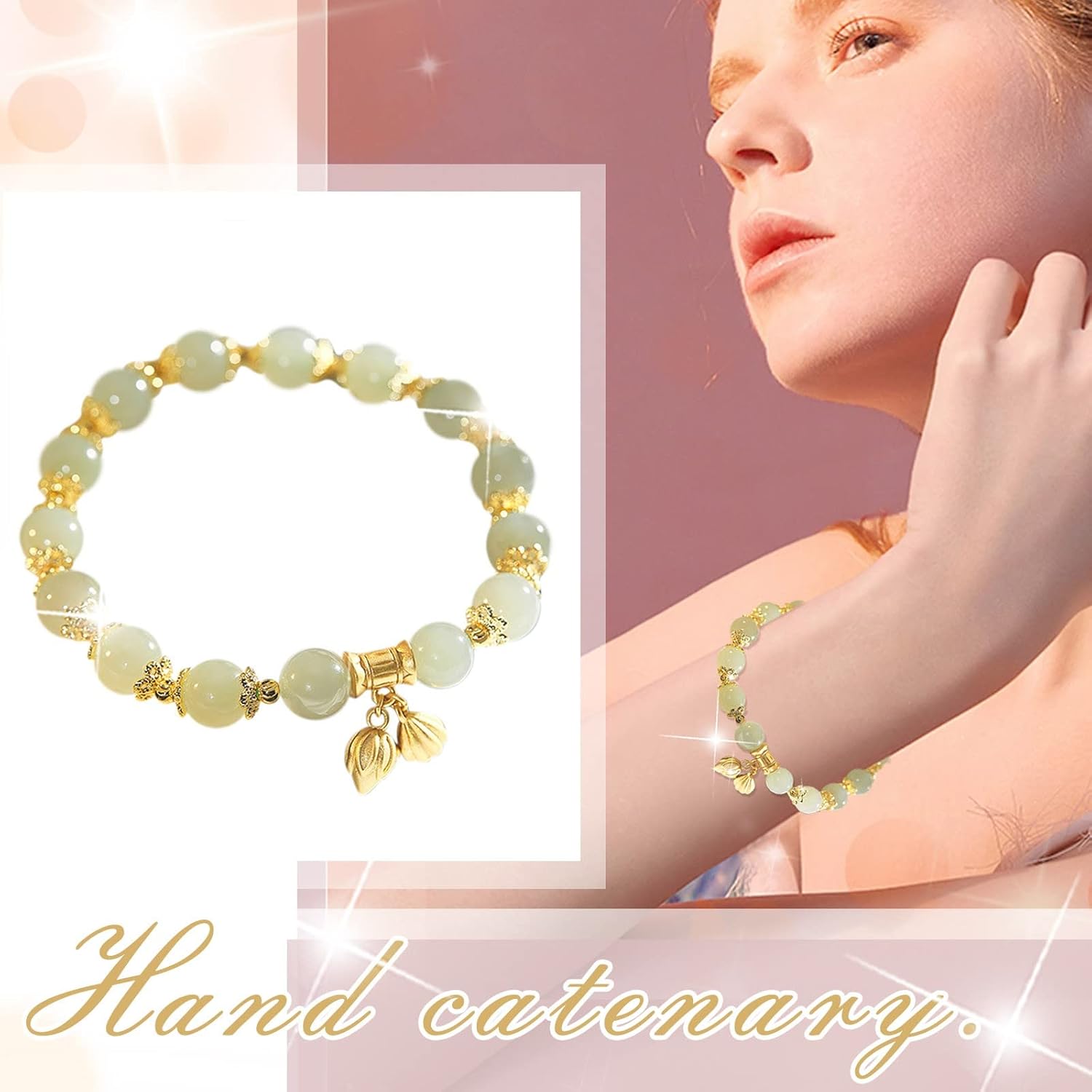 Hetian Jade Bracelet for Women 2024, Natural Green Nephrite Jade Bracelet with Gold Leaf Charm Bracelet, Lucky Handmade Jade Bracelet Ladies Jewelry