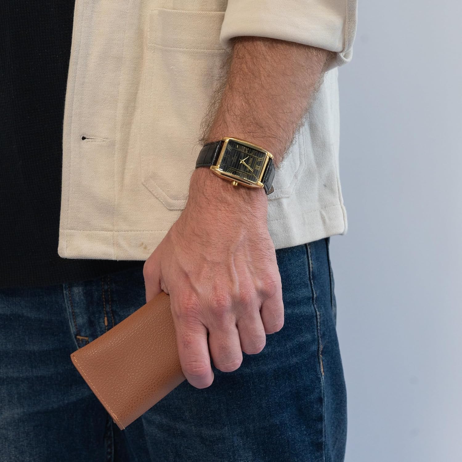 Experience the perfect blend of style and functionality with this sleek men’s wristwatch, designed to meet the demands of modern lifestyles. Crafted as an elegant yet practical accessory, it features a classic rectangular 38mm ion-polished case that adds sophistication to any look. Whether you’re at work, attending formal events, or enjoying casual outings, this men’s watch complements any outfit seamlessly. The durable design includes scratch-resistant glass, ensuring long-lasting clarity for its easy-to-read dial with bold Roman or Arabic numerals. This comfortable wristwatch comes with a genuine leather strap and a stainless-steel buckle, providing both style and a secure fit. The precision Japan Epson Quartz movement ensures accurate timekeeping, making this men’s wristwatch a reliable companion for your daily routine. Built for everyday practicality, it is water-resistant up to 100 feet (30M), making it ideal for handwashing, light rain, and daily wear. Its robust construction and timeless design make it a dependable choice for any occasion. Elevate your collection of leather watches for men with this versatile and durable piece. Whether you’re searching for a classic accessory or a thoughtful gift, this men’s watch combines style, precision, and practicality. Designed to enhance your look while meeting your functional needs, it’s a must-have addition to any lineup of men’s wristwatches.