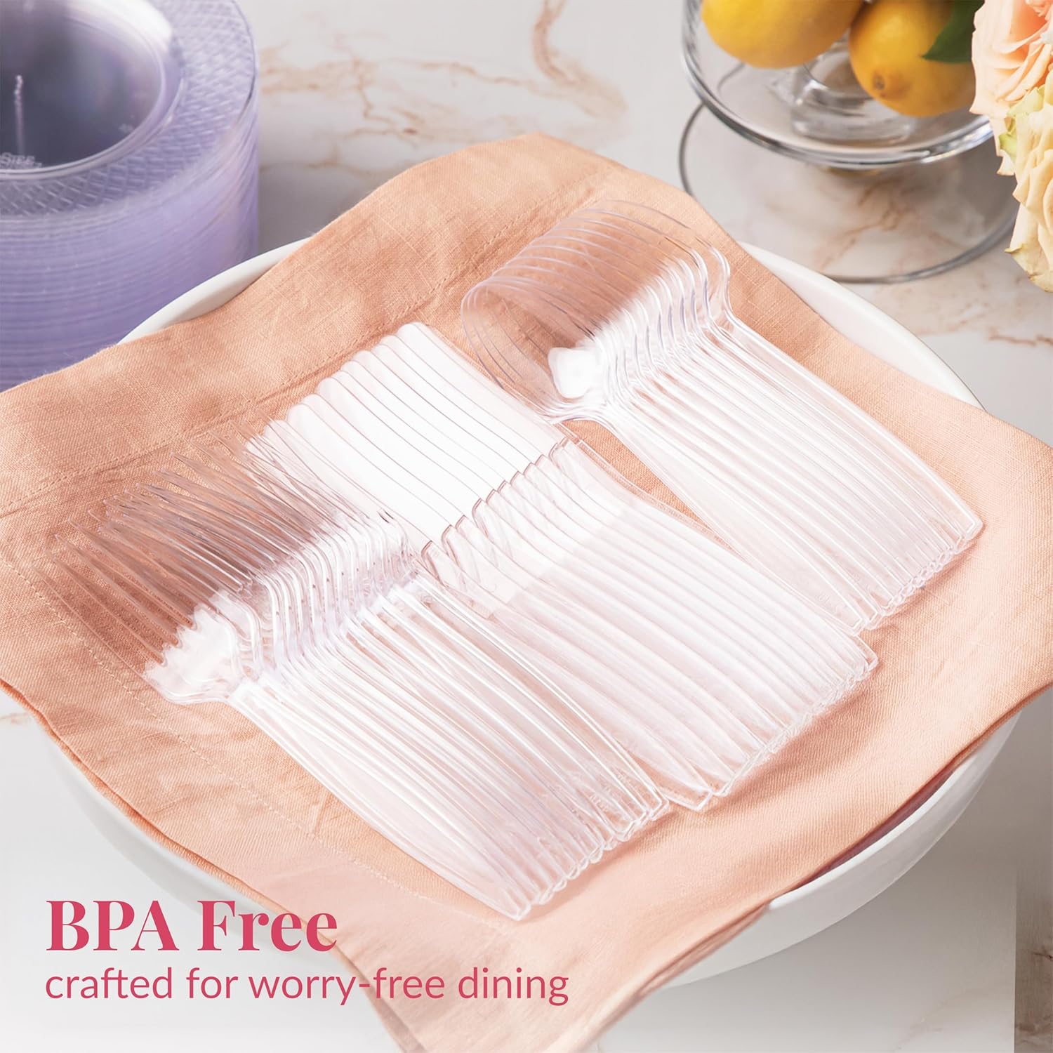 Seamless Tableware Match: Complements other tableware effortlessly, enhancing holiday feasts, parties, graduations, or everyday meals with convenience and style plastic cutlery