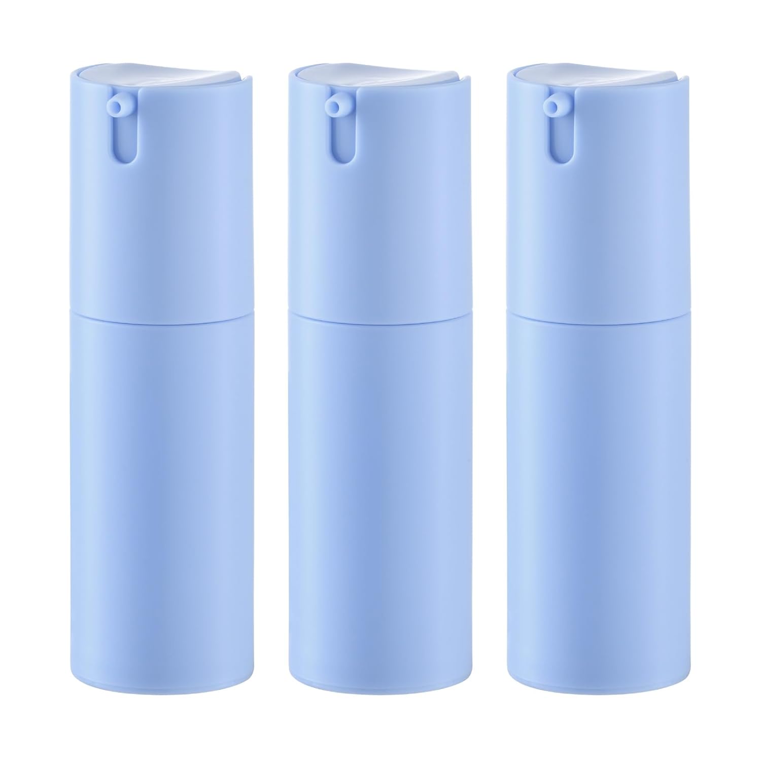 1 oz Airless Pump Bottles, Travel Lotion Container, Skincare Containers for Moisturizer (Plastic, Matte Blue, 3Pcs)