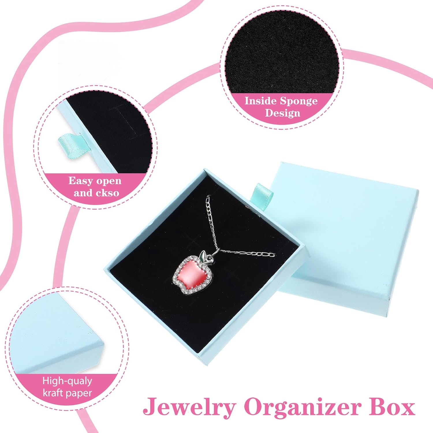 【Sturdy Materials】These gift boxes for jewelry are made of sturdy thick cardboard and lined with soft cotton padding to effectively prevent damage to items during transportation. The design with lid ensures that the jewelry gift box has a stable structure and is not easy to deform or fall apart. With these exquisite small jewelry boxes, you can add a touch of fashion and elegance to your products.