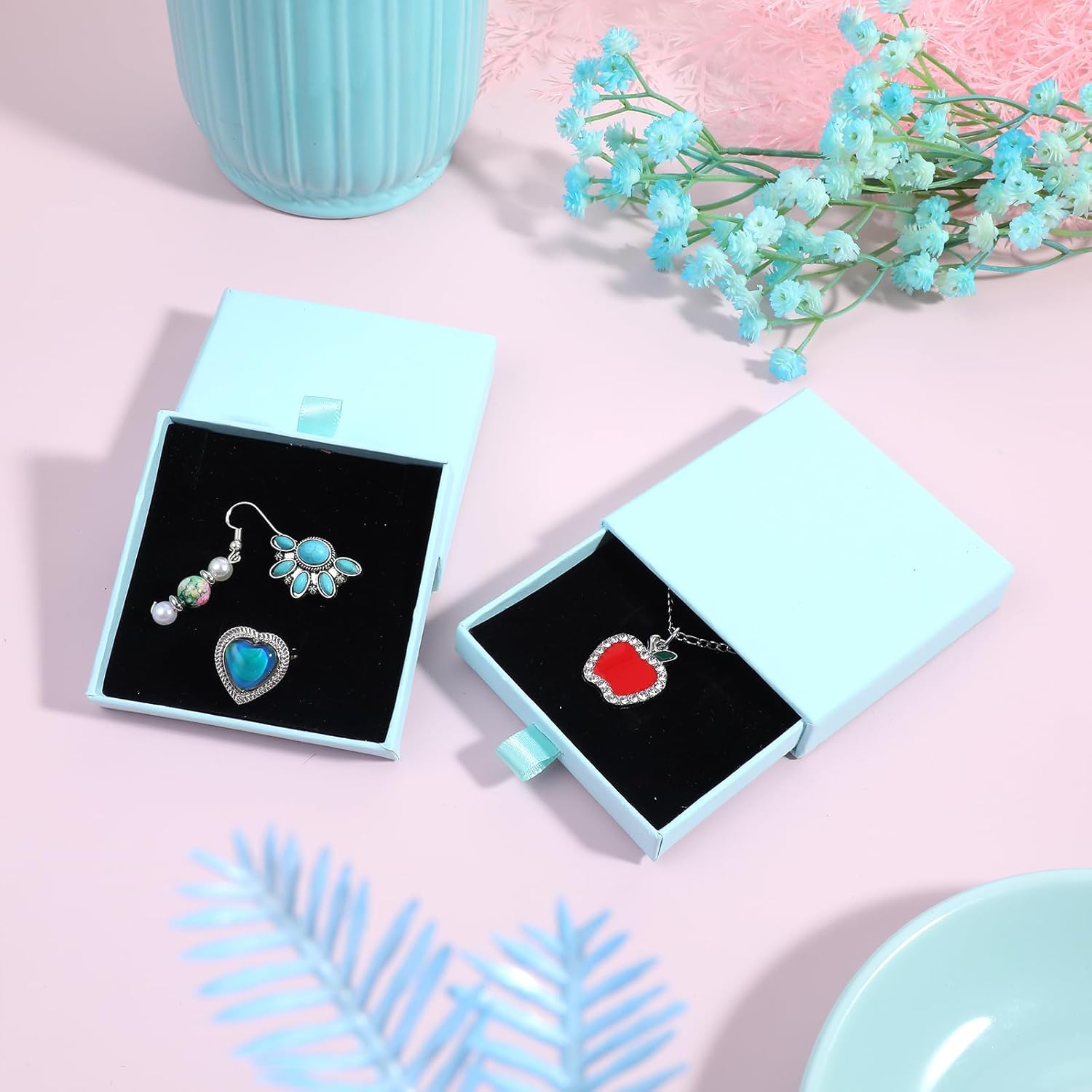 blue cardboard jewelry box, small jewelry gift box are perfect for storing all kinds of accessories, such as bracelets, necklaces, earrings, rings, as well as various ornaments, pendants, crystals, beads, gemstones and collectible coins.