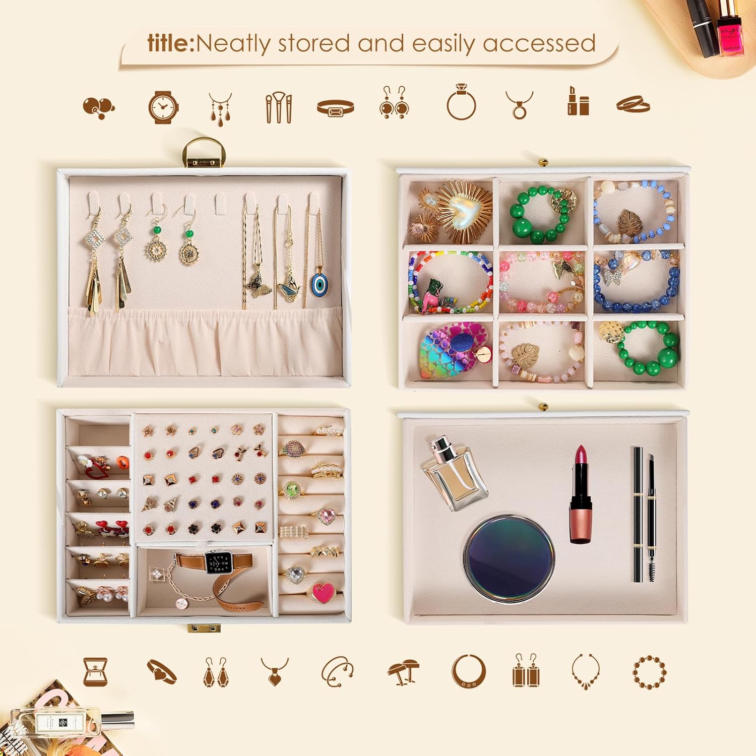 【Best Gifts for Her Women】Our exquisite jewelry box is the perfect valentine gift for women and girlfriend, making it the best choice for any occasion like Christmas, Mother’s Day, birthdays, weddings and Valentine’s Day, with the timeless appeal of this jewlery organizer, versatile functionality, and thoughtful organization, offering a captivating and sentimental present that will be cherished and adored, becoming a shining star in their room decor and a symbol of your affection for the remarkable women and moms in your life.