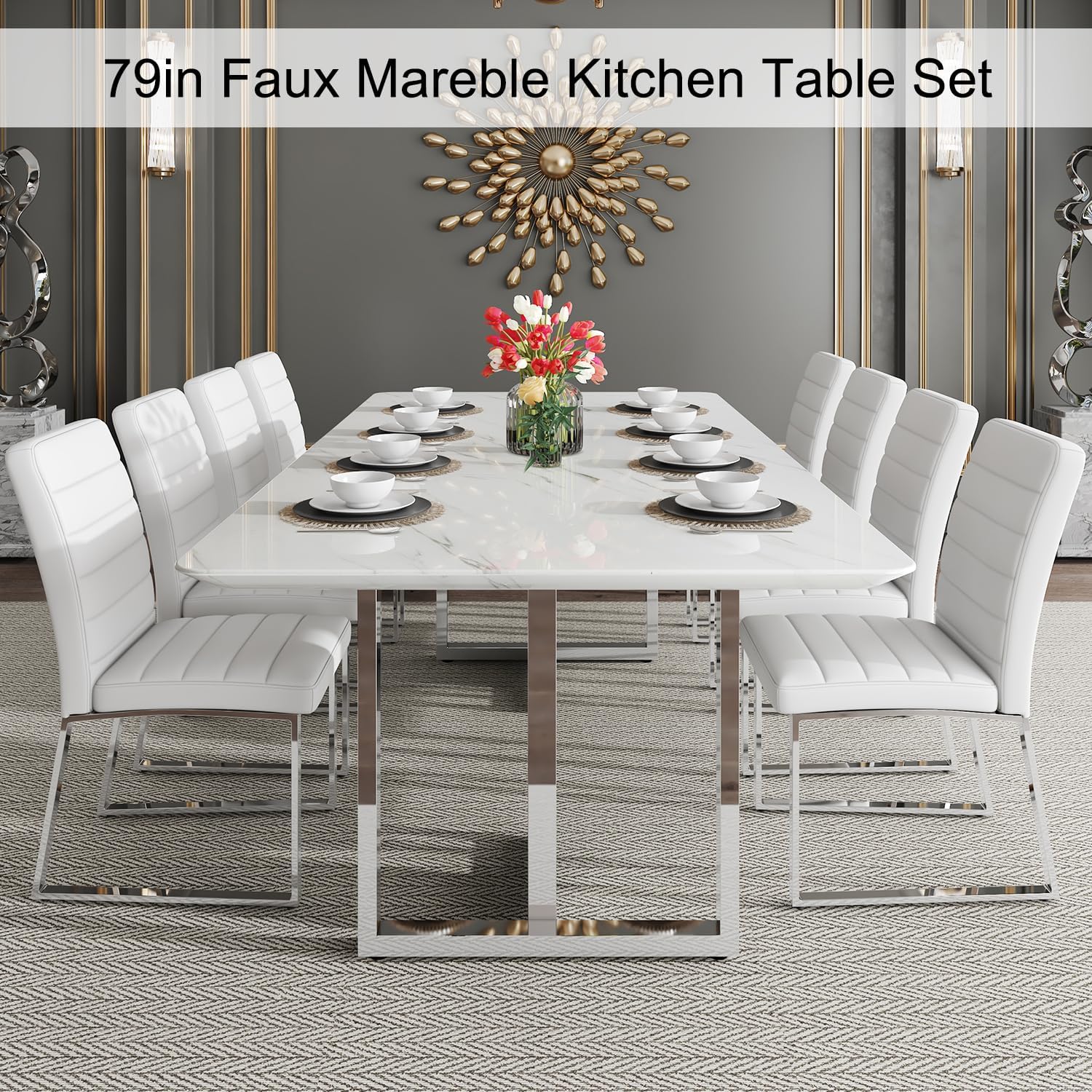 Kitchen Table Chairs Set of 8: This dining sets includes 8 chairs, ensuring you have ample seating for everyday meals with your family, entertaining guests and gatherings. The 79 inch table length provides plenty of space for dining and socializing