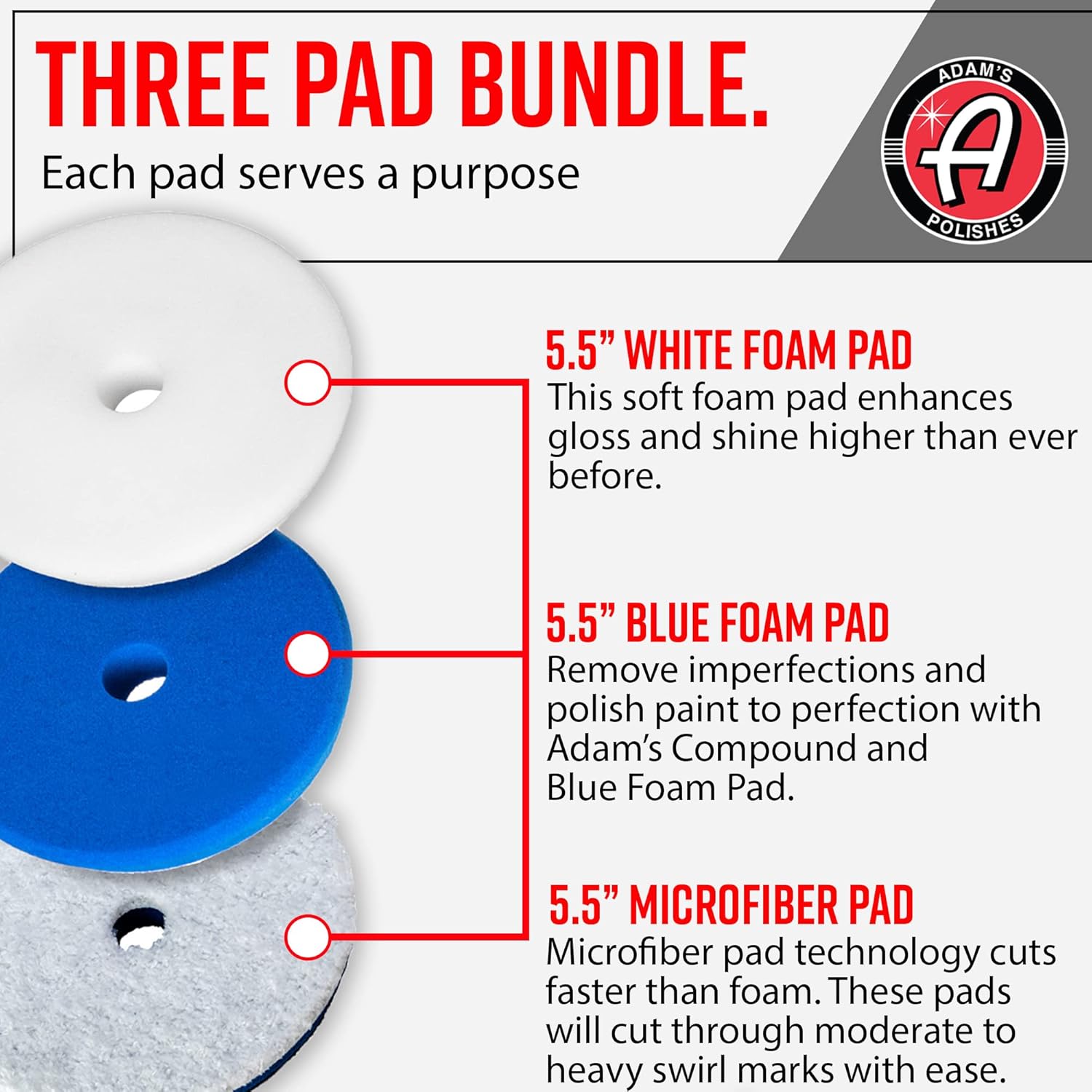 Adam’s Polishes Premium Polisher Pads Bundle – Expertly Designed to Make Polishing and Paint Correction Easier and Quicker – Color Coded to Match with Recommended Polishes or Compounds (5.5″ Pads)