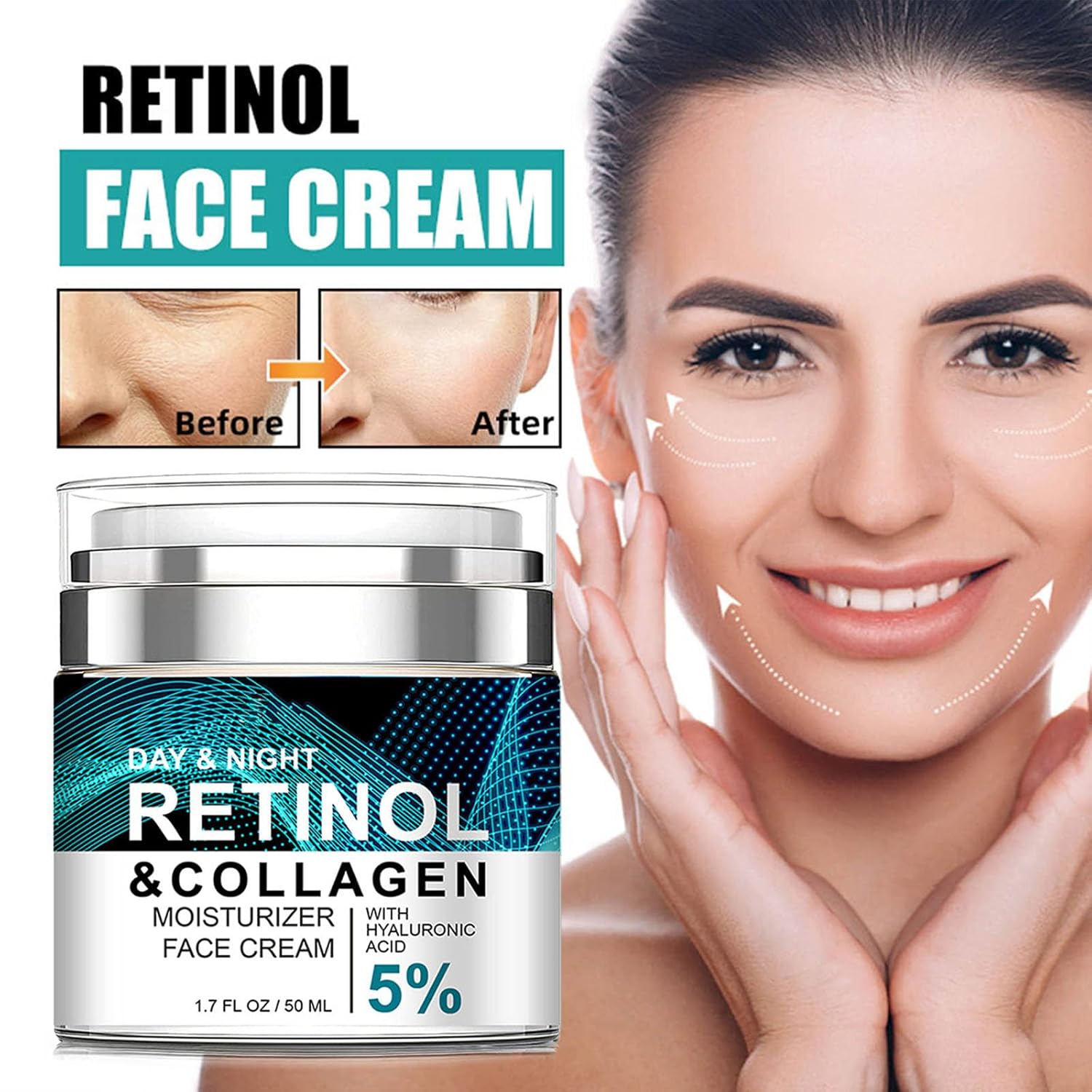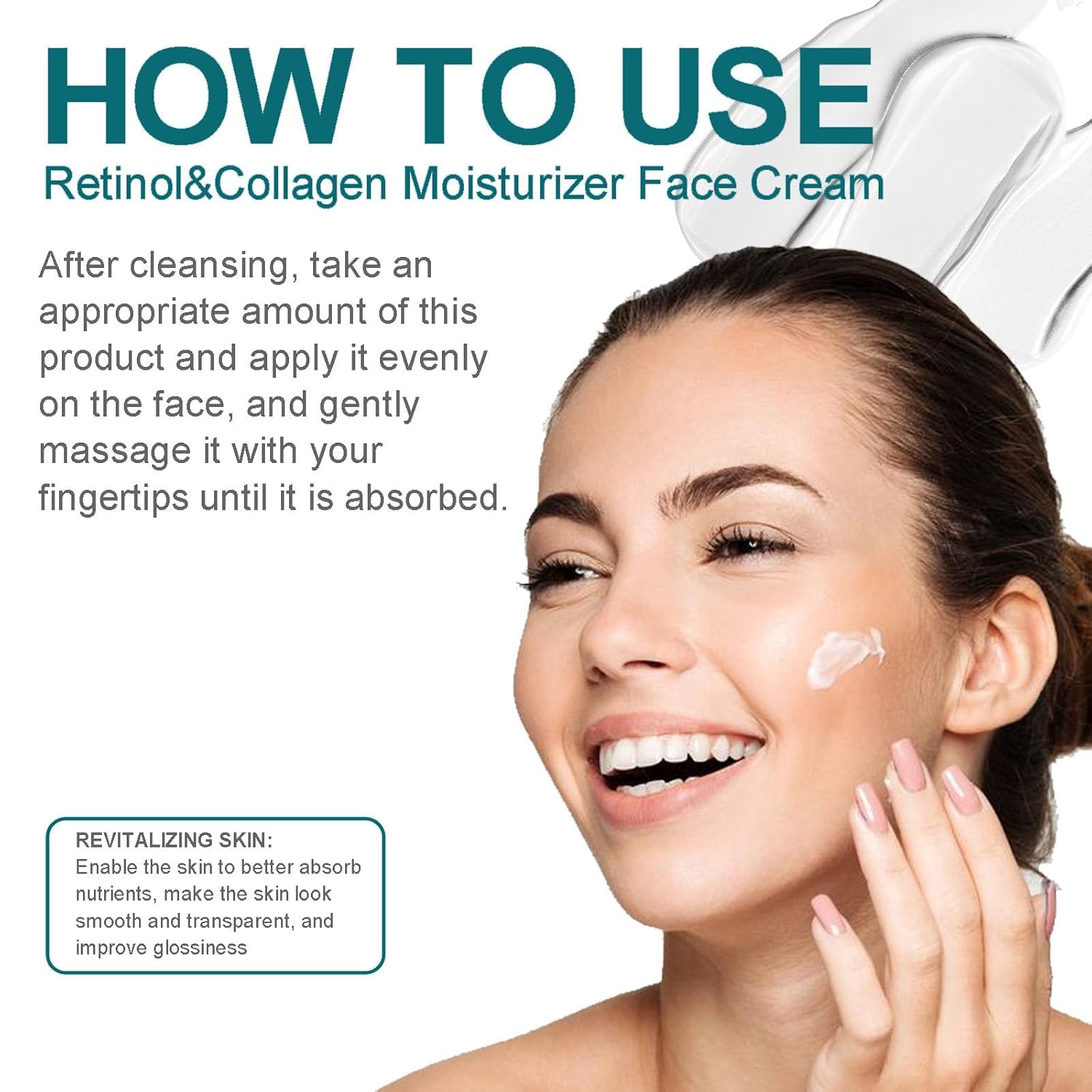 【24-Hour Facial Care】: Unlike other facial skin care products that often contain artificial fragrances and harsh ingredients, our Retinol and Collagen Cream is specially developed to fight age by effectively smoothing skin, clearing pores, eliminating acne and Rejuvenates skin and helps reduce signs of sun damage, fine lines, wrinkles, blemishes, uneven skin tone and sagging.