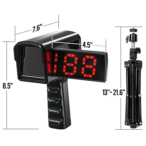 Specification: Baseball Radar Guns – Speed Sensors Baseball Speed Training Equipment with LED+LCD Larger Display, Handheld or Hand Free Speed Radar Gun for All Baseball Players| with Tripod