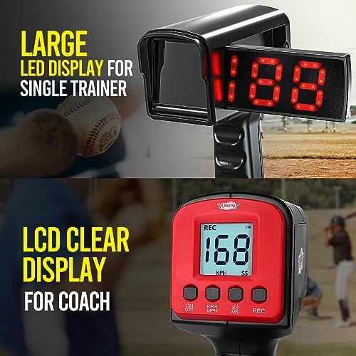 ⚾【Large & Clear Display】 This baseball speed radar features a side large LED display for solo practice and a back LCD display for coaches to as it should be view your progress.