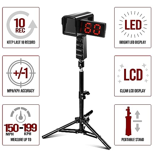 Baseball Radar Guns – Speed Sensors Baseball Speed Training Equipment with LED+LCD Larger Display, Handheld or Hand Free Speed Radar Gun for All Baseball Players| with Tripod