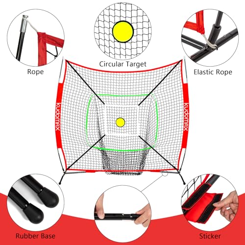 ★ SPECIAL CIRCULAR TARGET & TRICKE ZONE ATTACHED – Different from all other baseball nets, our 6’×6′ baseball net equipped with a Special Circular target which can be sticked on the middle of the net or other location for Improving accuracy. And also equipped with a Strike zone ,perfect for hitting, fielding, pitching, soft toss practices anywhere anytime for solo or team training and coaching, suitable for indoor and outdoor practice.