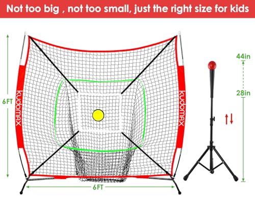 ★ NOT TOO BIG OR TOO SMALL & PORTABLE TO CARRY – 6’×6′ baseball net is most suitable for the children from 6 to 13 years old,not too big or too small, just the right size for kids. Foldable hitting net and detachable bow frame, easy to put into a carrying bag with handle. Portable and lightweight, easy to take and move, practice anywhere, backyard, basement, garage, anywhere can be your field.