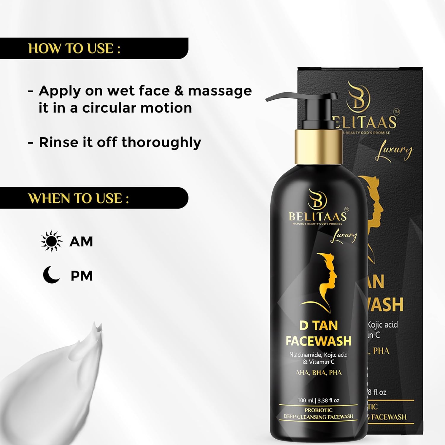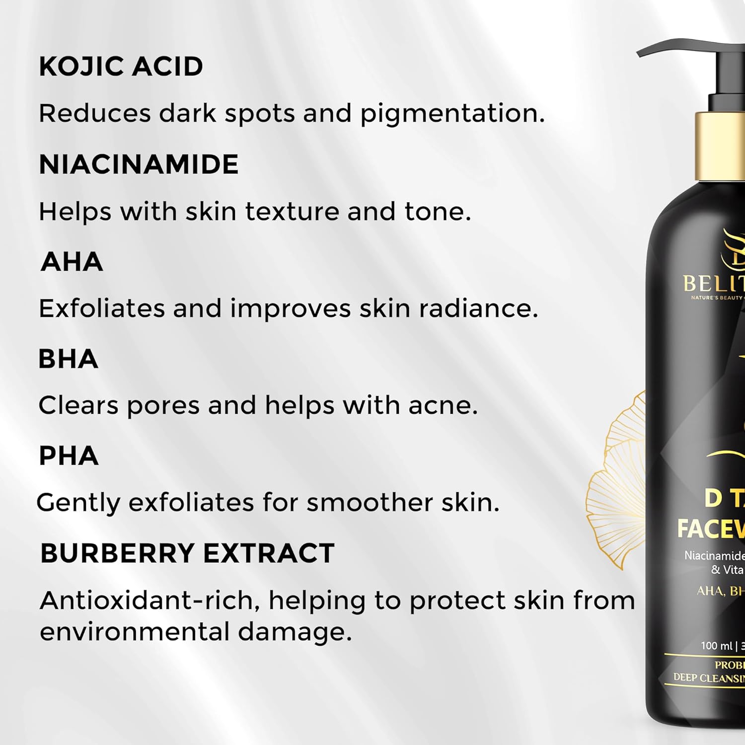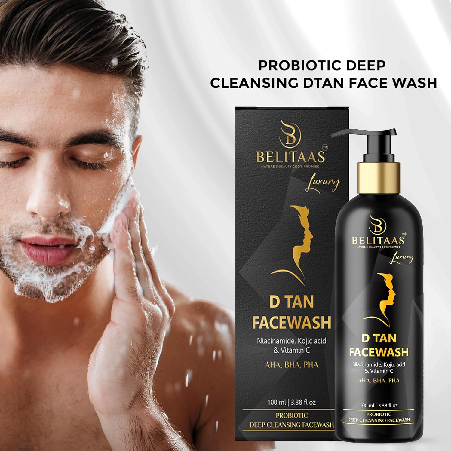 Belitaas Luxury D Tan Face Wash with Kojic Acid, AHA, BHA & PHA – 100 ml