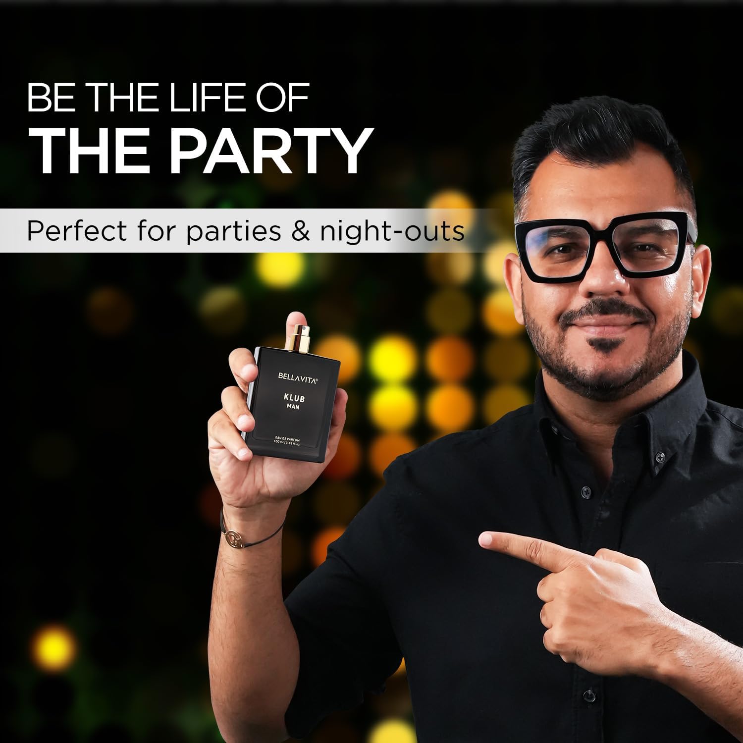 Bella Vita- Luxury KLUB MAN Eau De Parfum for Men | Family: Citrus, Spicy, Woody, Amber | Notes: Lemon, Jasmine, Rose, Musk, Amber, Vanilla, and Patchouli | 100 ml, 3.38 fl. oz.