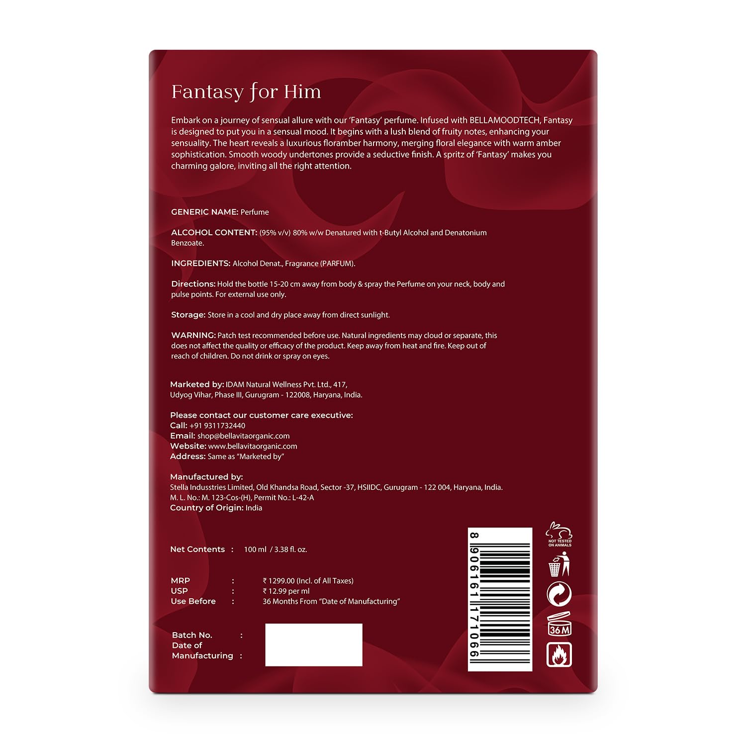 For the first time in India, immerse yourself in pure allure with Fantasy, a fragrance crafted to elevate sensuality. Powered by BELLAMOOD TECH, a scientific technology to uplift your spirit, this fragrance begins with a vibrant burst of apple, bergamot, and plum, creating an irresistibly enticing allure. The heart blends cinnamon and jasmine, adding warmth and mystery, while a seductive base of cedarwood and vanilla lingers beautifully.