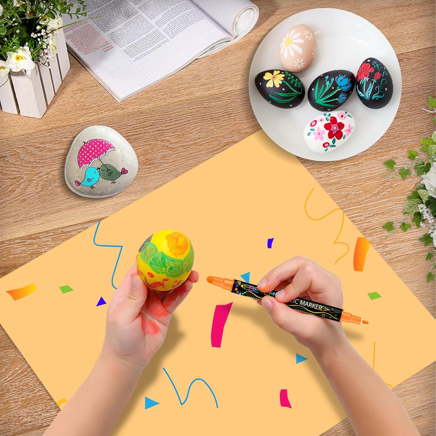 【Ideal Gift】Betem Acrylic Paint Pens will be a useful gift for your sister, brother, daughter, granddaughter, son, kids, wife, painted rock lovers for birthdays, Easter Day, Halloween, Christmas Day, Valentine’s Day, Thanksgiving Day, New Year or special holidays gift. DIY unique gift, bring color into your life and create decorative products!
