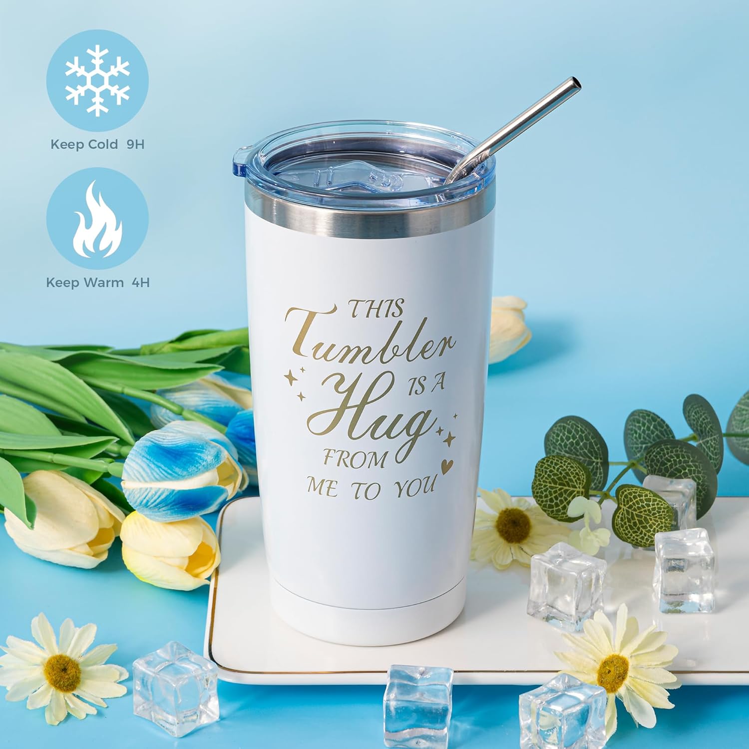 20OZ Insulated Tumbler: Made of sturdy stainless steel with double-walled vacuum insulation, and it thoughtfully includes a straw and cup brush for added convenience. It can keep drinks cold for up to 9 hours or insulated for up to 4 hours! Perfect for kinds of cold and hot drink, etc. With motivational quote “This Tumbler is A Hug From Me To You”, the tumbler of this inspirational gifts thank you gifts