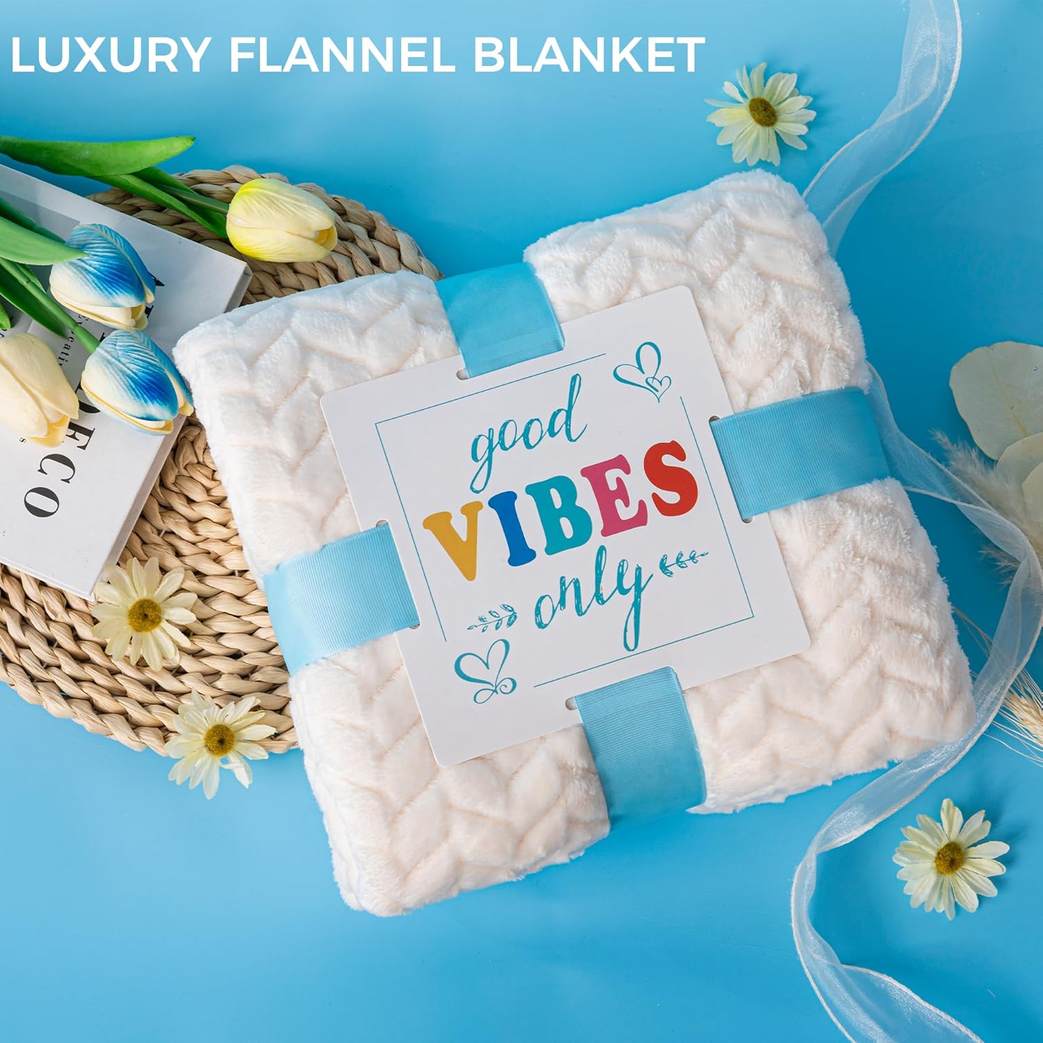 Luxury Plush Throw Blanket: The ultra-plush throw blanket in our Get Well Soon collection wraps her in cloud-like comfort.extremely skin-friendly, soft, cozy & fluffy, can wrap her into total comfort and relaxation.”good VIBES only” The quote on its wrapping paper card can definitely inspire her & cheer her up!! Comes with a silk eye-mask, pretty soft, comfort & lightweight, ensures her healthy & pleasant sleep. Choose this soothing gift set to uplift her spirits and spark joy—a heartfelt way to show you care while promoting relaxation and happiness