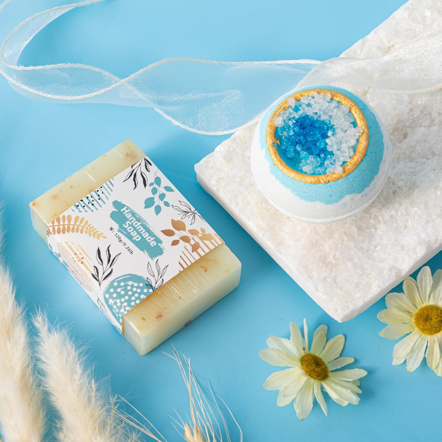 Bath bomb:It keeps her skin hydrated without feeling sticky, is safe for use, and will not stain the skin or bathtub after use. Which transforms your bath into a relaxing retreat.Handmade Soap: Our premium soap is made with natural flower essential oil, designed to transport you to a dreamland of cloud-like luxury. This uniquely crafted aroma promotes relaxation.