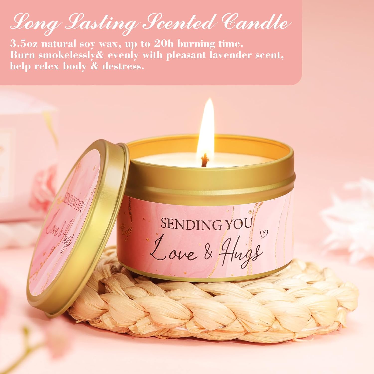 Rose-scented candle in an elegant golden tin, ideal for thoughtful gifting and creating a warm, comforting atmosphere
