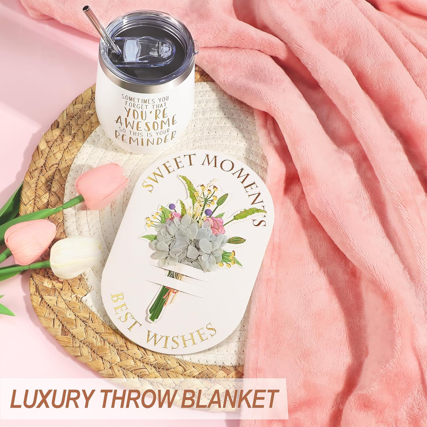 EMBRACE WARMTH AND POSITIVITY: Indulge her senses with our luxurious flannel blanket, while the furry socks keep her feet cozy. The elegant silk scrunchie adds a touch of sophistication, and the cosmetic bag is perfect for organizing beauty essentials on the go. In addition, the 12oz stainless steel thermos allows her to enjoy hot or cold drinks anytime, whether it’s morning coffee or evening tea, it can maintain the ideal temperature, making her spa time more comfortable and enjoyable