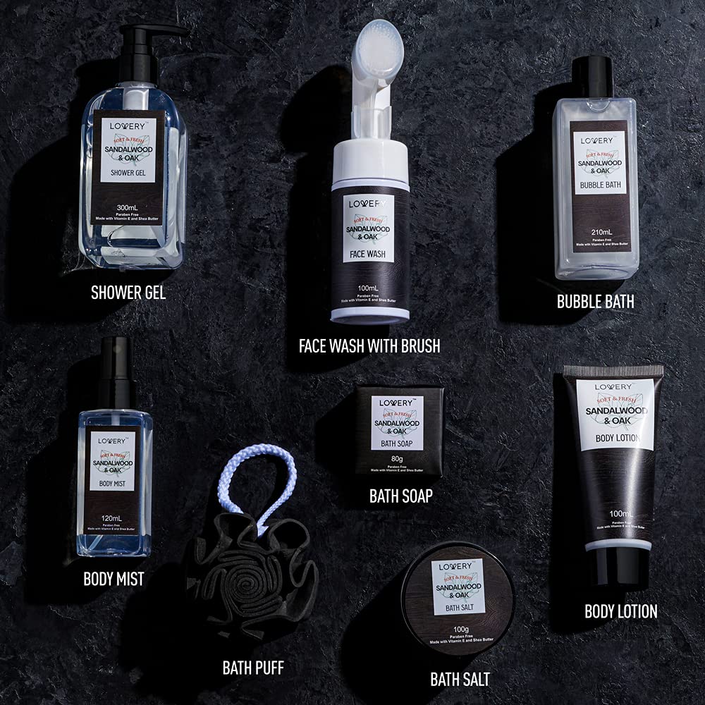 Lovery Sandalwood and Oak Bath Spa Kit combines all the powerhouse shower essentials in one luxurious gift box. It is a calming bath set that nourishes your body from head to toe – giving you that professional spa-like treatment at the comfort of your own home.