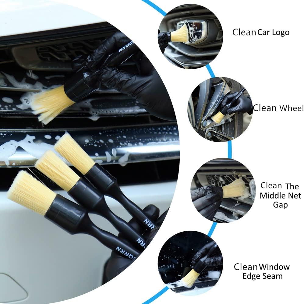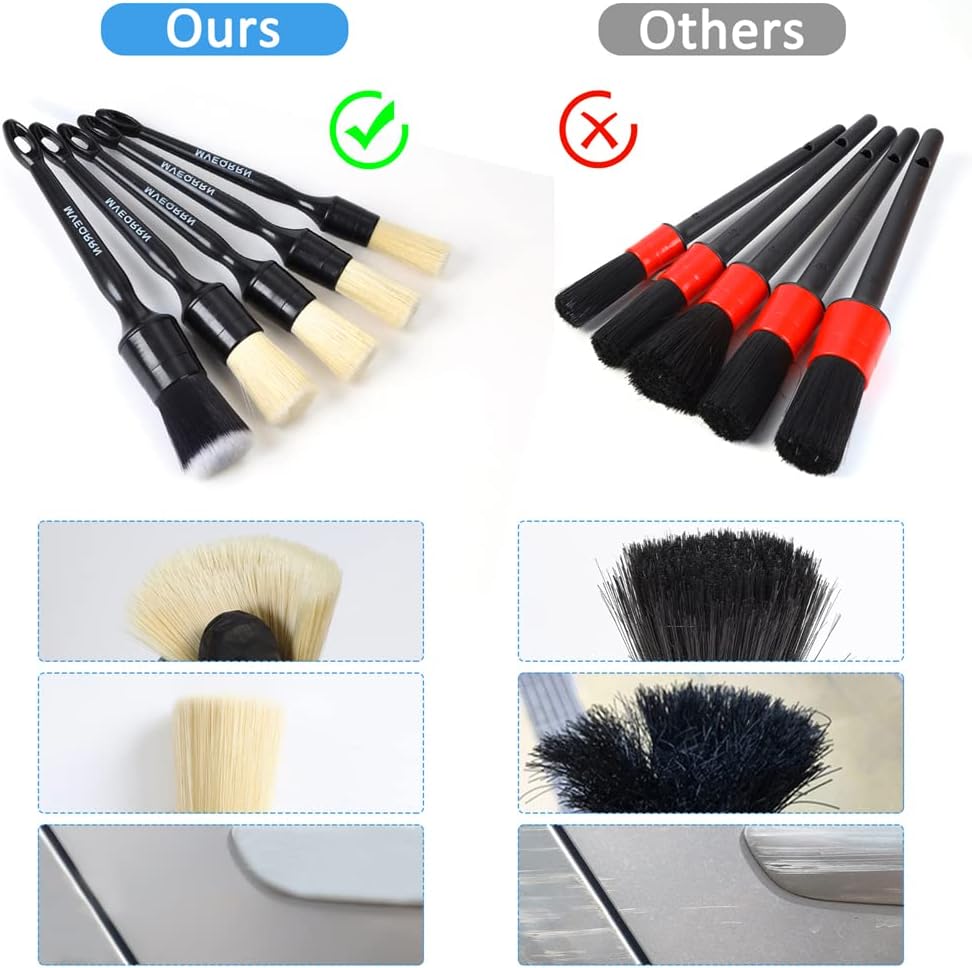 【MULTI USE】Widely Loved And Popular With Different People And The Necessitated Detailing Brush Set For Especially The Car Lovers And Detailers. Mainly Used For Cleaning Wheels, Emblems, Dashboards, Air Vents, Leather And Seats, Brake Calipers, Grilles And Grates, Engine Bay, Interior And Exterior Car/ Motorcycle, Etc. Also Fit For Daily Devices Like Computers, Radios And So On!