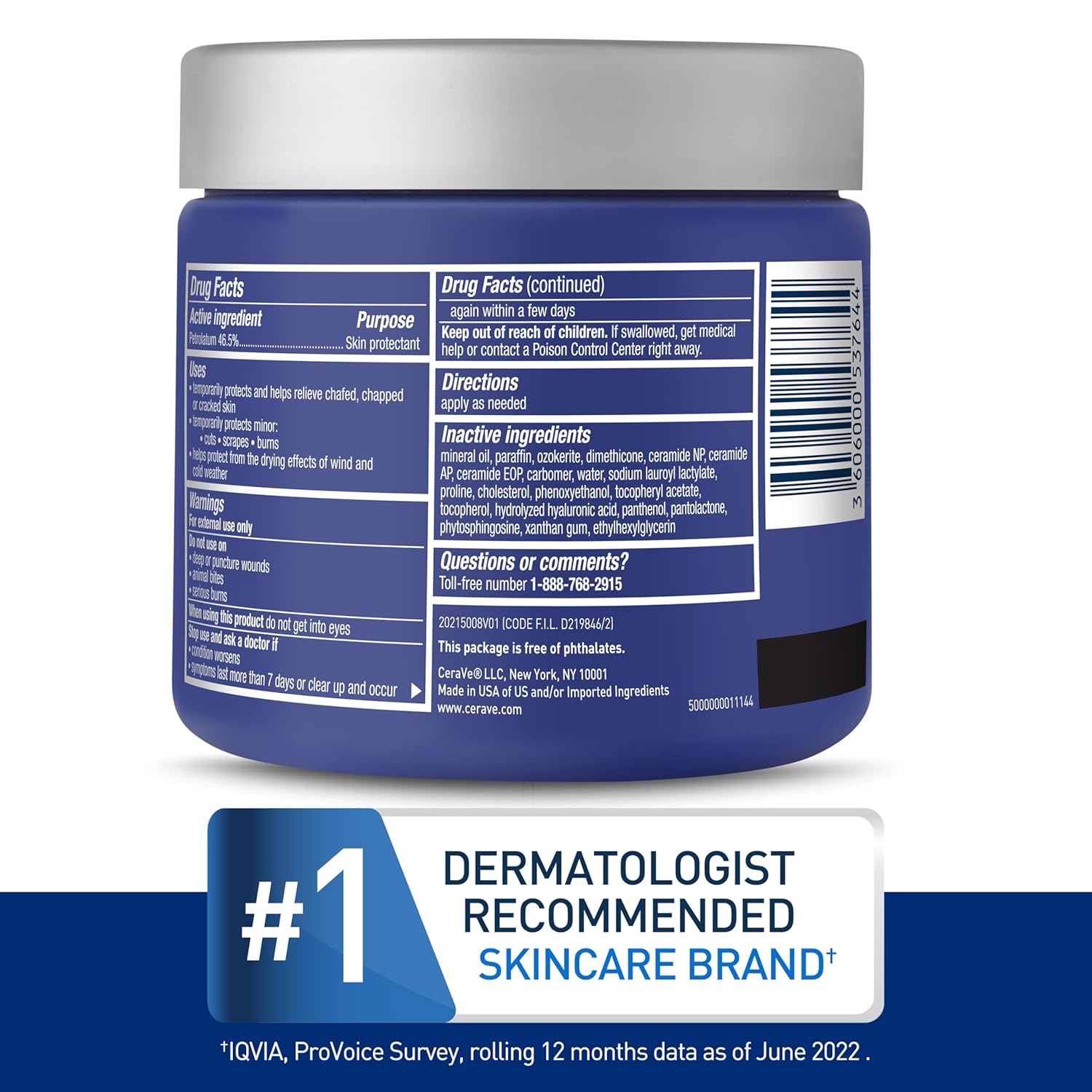 CeraVe Healing Ointment, Hydrating Skin Protectant With Petrolatum, Hyaluronic Acid & Ceramides, Face & Body Skin Barrier Repair For Cracked, Chafed, Dry Skin, Fragrance Free & Lanolin Free, 12 Oz