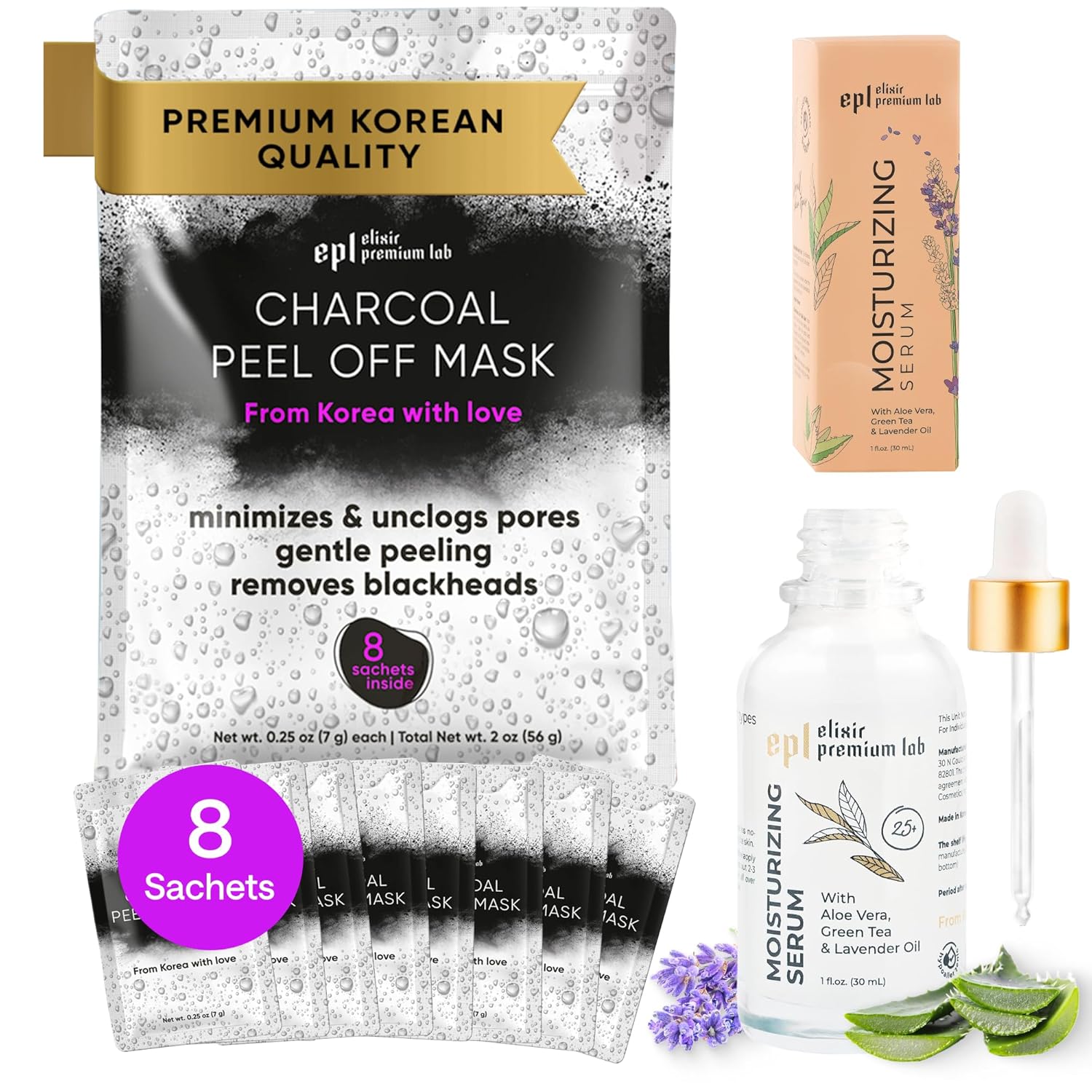 Charcoal Peel Off Mask and Facial Serum – Premium Skincare Bundle – Niacinamide Serum & Korean Charcoal Peel Off Face Mask for Women & Men