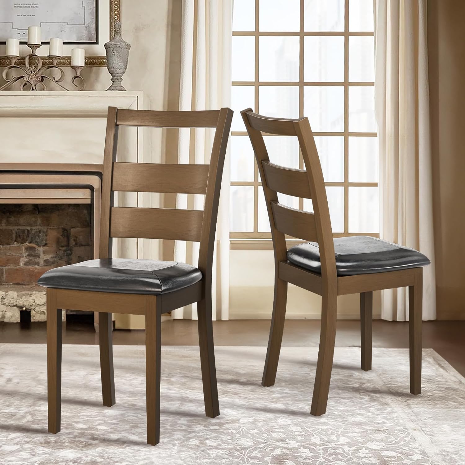 Comfortable Dining Experience: Indulge in pure comfort with our Windsor dining chairs, featuring a sophisticated spindle back design and ergonomic support. Crafted from high-quality rubber wood, these wooden table and chairs offer unmatched comfort during extended gatherings. The widened and thickened chair seat cushion, upholstered in skin-friendly PU leather, ensures optimal softness and support for everyone around the table.