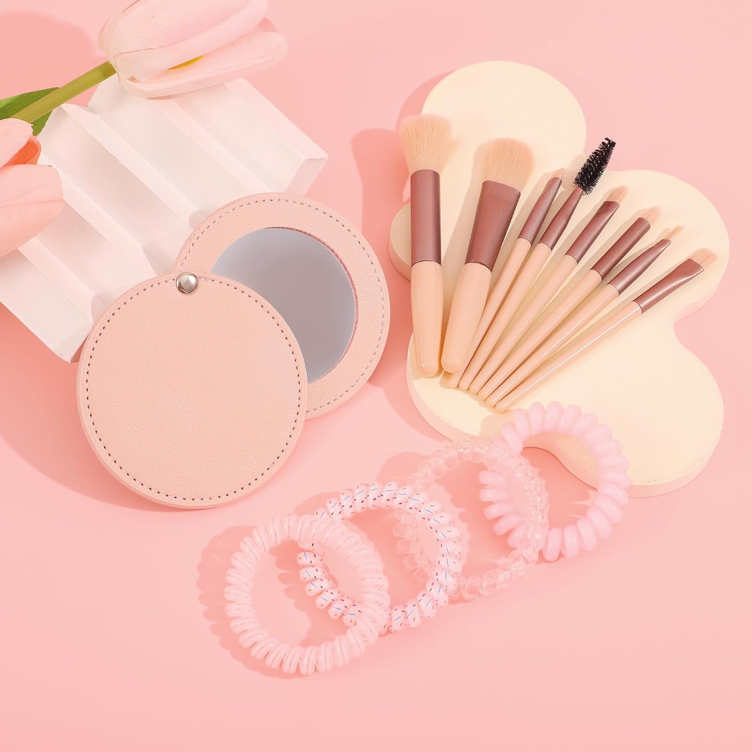 Scent Diffusion and High-Quality Mirror: Add your favorite perfume or essential oil to the flower aromatherapy stone, perfect for wardrobes, bathrooms, cars, shoe cabinets, bedrooms, and suitcases, bringing a pleasant scent to your life. The PU rotating makeup mirror has a fine leather texture and high clarity, making it portable and suitable for various occasions. Best mothers day gifts.