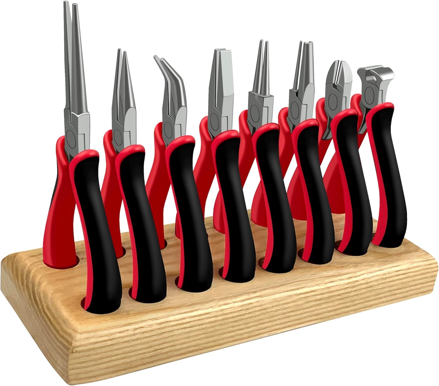 【Professional Wooden Storage】The stylish wooden pallet undergoes high-temperature steam treatment for safety, with a professional polished anti-slip design to neatly store all 8 pliers. The 0.7-pound lightweight design ensures stability while being easy to move, optimising your workflow to keep your workbench tidy and tools within reach.