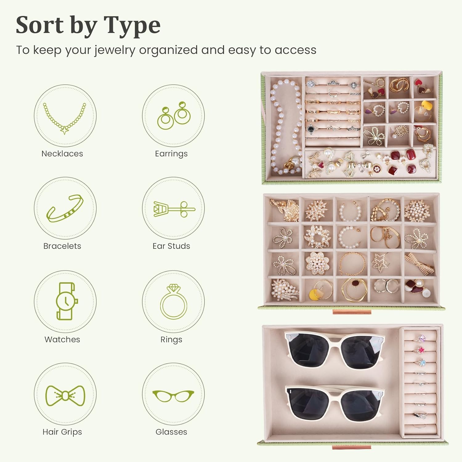 Be the first to review “Dajasan Jewelry Organizer Box, Jewellery Boxes for Women, 3-Tier Jewelry Storage Organizer for Earring, Ring, Necklace, Bracelets (Avocado Green)”