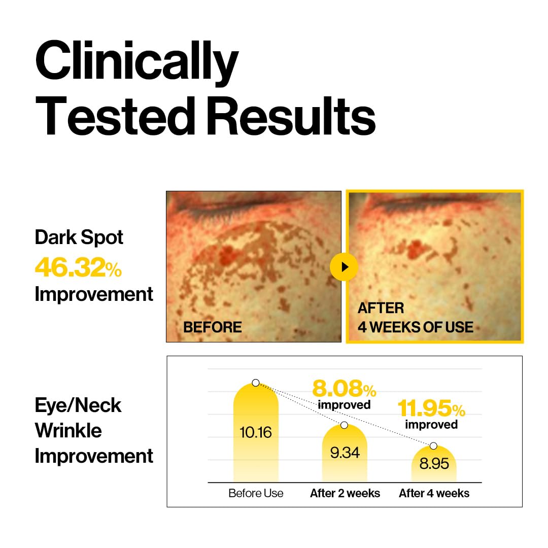 SMOOTH & BRIGHT — The dual-core formula melts into your skin, combining dark spot and firming care for a dewy glow without stickiness.