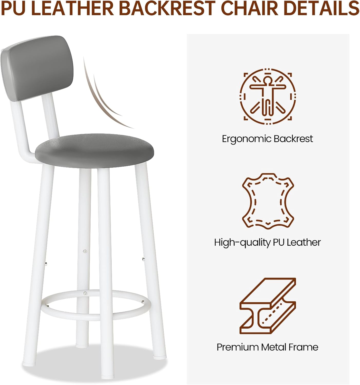 The backrest barstool chair features a ladder frame base that can withstand 350 pounds to ensure its stability, allowing you to enjoy dinner comfortably.
