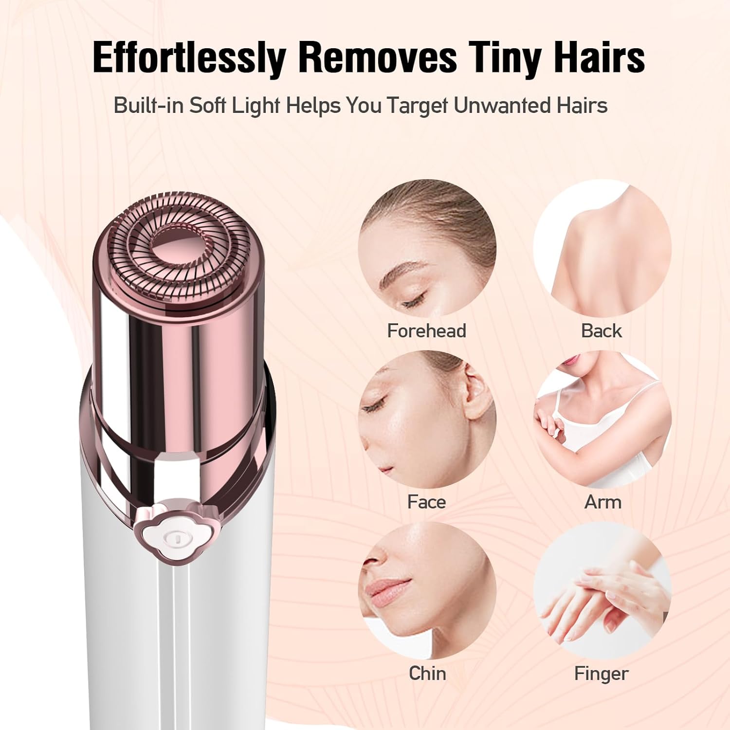 Smart LED Light & Exquisite Makeup: Face hair remover designed for female faces, suitable for the finest hair on the upper lip, chin, cheeks and jawline. Built-in smart light accurately captures every hair, keeps your face smooth and flat after use, creates a perfect makeup, allows you to stay confident at any time, for women a warm gift!