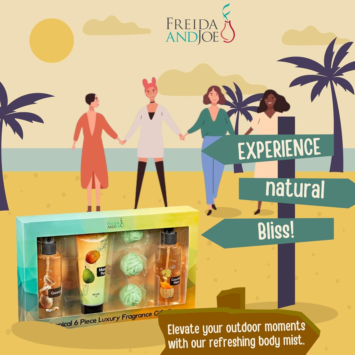 Pamper Yourself: Elevate your self-care routine with our perfect all-in-one holiday set, featuring a 6oz Coconut Body Mist, a 6oz Cucumber Melon Body Mist, a 3oz Mango Pear Lotion, and three delightful bath bombs. This indulgent experience showcases fragrances sourced from the UK, making it ideal for gifting or treating yourself.