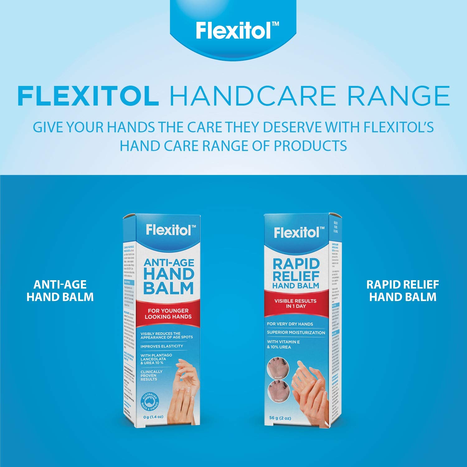Flexitol Anti-age balm offers complete anti-aging care for your hands. Clinically proven to improve skin elasticity & firmness while reducing the appearance of age spots & pigmentation.