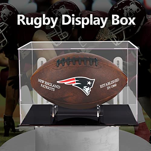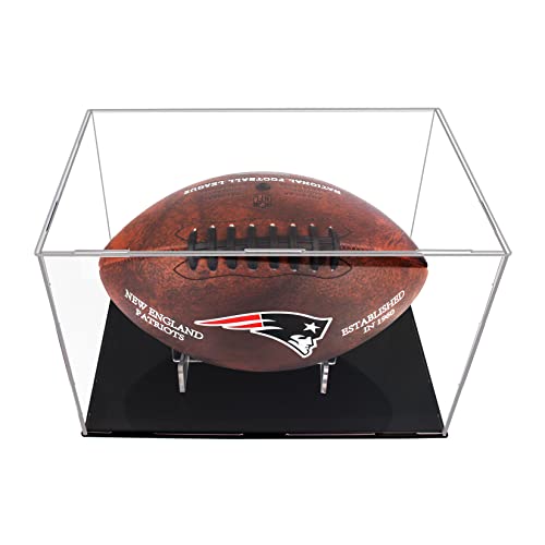 Football Display Case,Memorabilia Display Box Cases for Football or Memorial Sports Gloves,Self-Adhesive Wall-Hanging with Steel Brackets Hanger&Removable Interior Football Display Stand