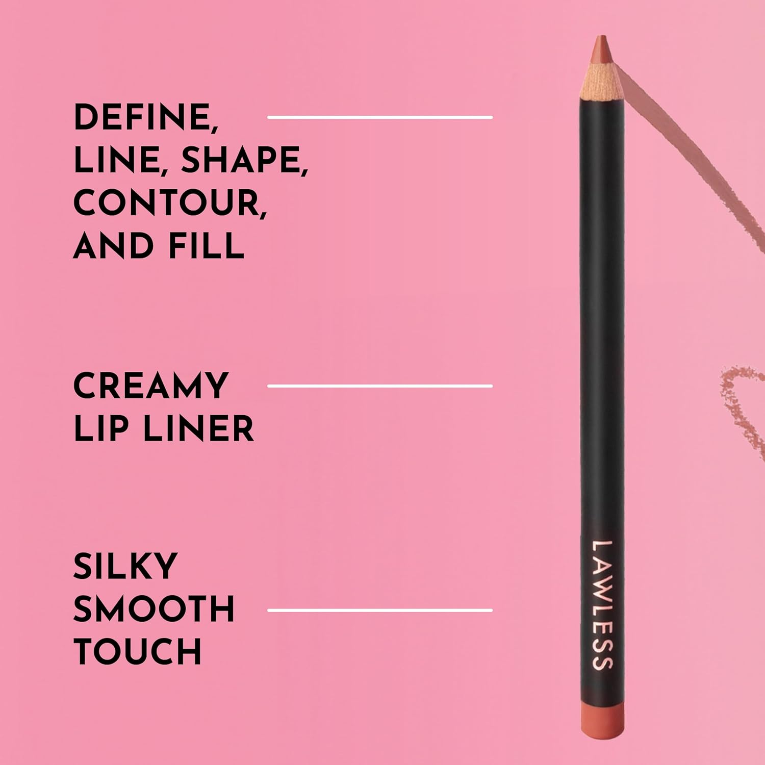 Define, line, shape, contour, and fill with Lawless Forget The Filler Definer Liner. This comfortable, creamy lip liner provides a silky smooth touch and optimal glide, allowing you to create precise lines and effortlessly perfect your pout.
