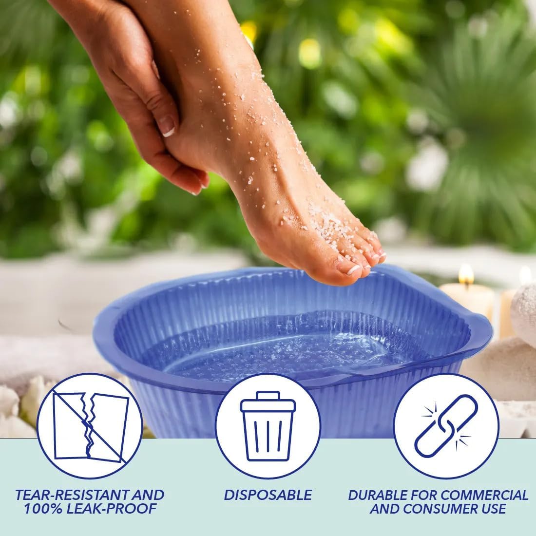 50% Thicker Design Tear-Resistant and 100% Leak-Proof Disposable, Sanitary and Economical Durable for Commercial and Consumer Use Fits Most Foot Spa Tub Basins or Foot Bath Soak Basins Available in 50-ct. and 100-ct.
