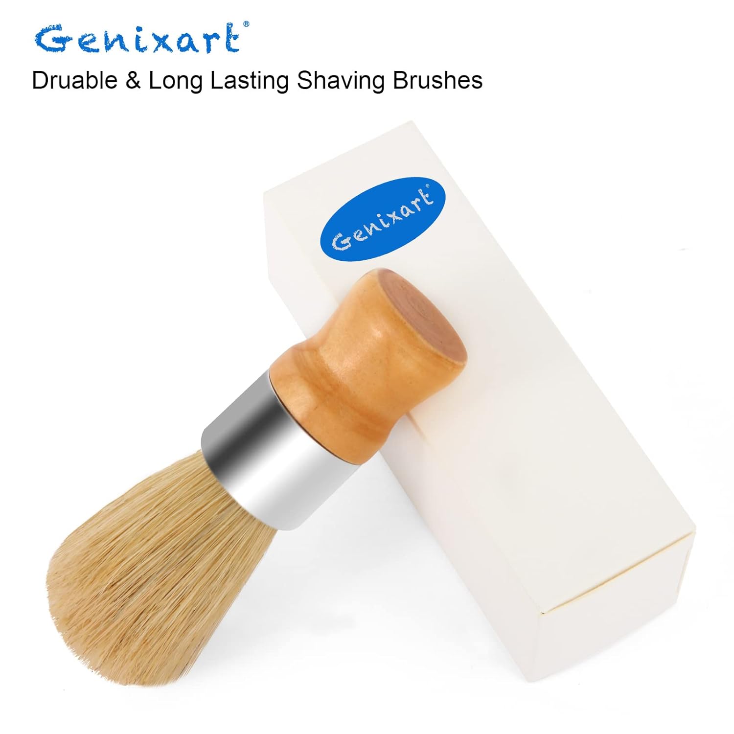 Genixart Shaving Brush, Nature Bristle Shave Brush, Luxury Shaving Brushes for Men as Gift for Father Boyfriend Husband (2 pcs Gift Box)