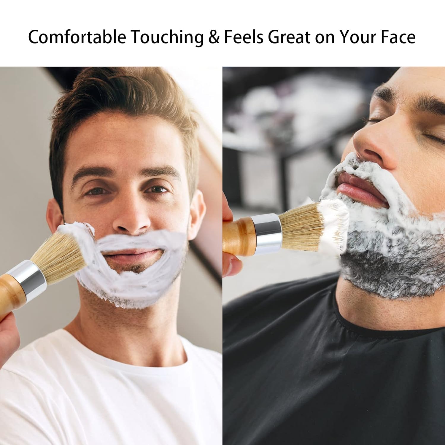 🦋 Creates Rich Lather: Our 100% nature bristle large shaving brush could hold a huge amount of water, works great with shaving cream or shaving soap, and producing rich lather quickly, which makes it easy to get a real smooth gliding wet shave at home or on travelling, and provide you with the best shaving experience imaginable.