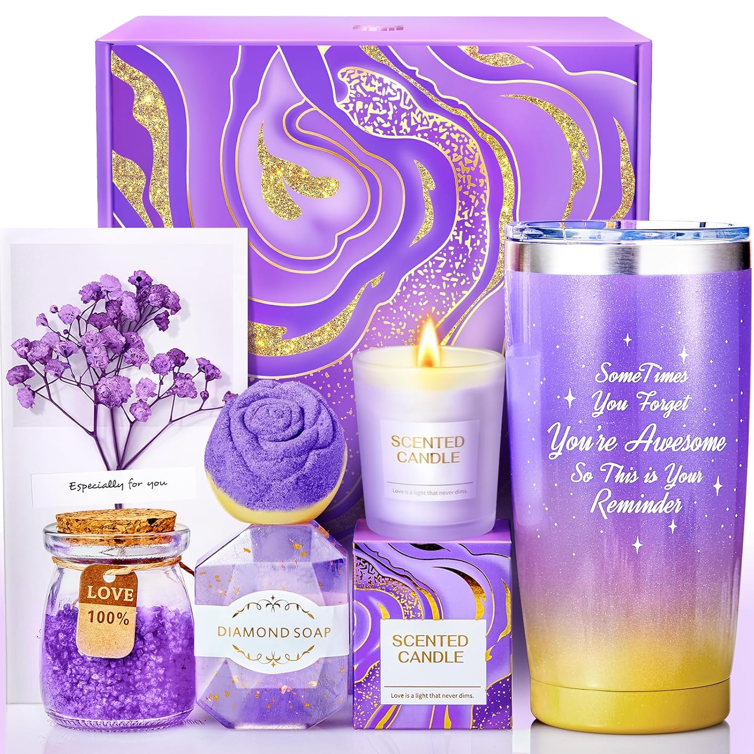 Elegant Gifts for Her – Beautifully Packaged – the purple color scheme and gold lines add a sense of luxury and sophistication, leaving a unique and memorable impression. Treat your beloved one to a unique gift set that instills comfort, warmth, and serenity. Excellent for best friend birthday gifts, womens gifts for christmas, personalized gifts for women, mom birthday gifts, end of year student gifts from teacher, or any other special day.