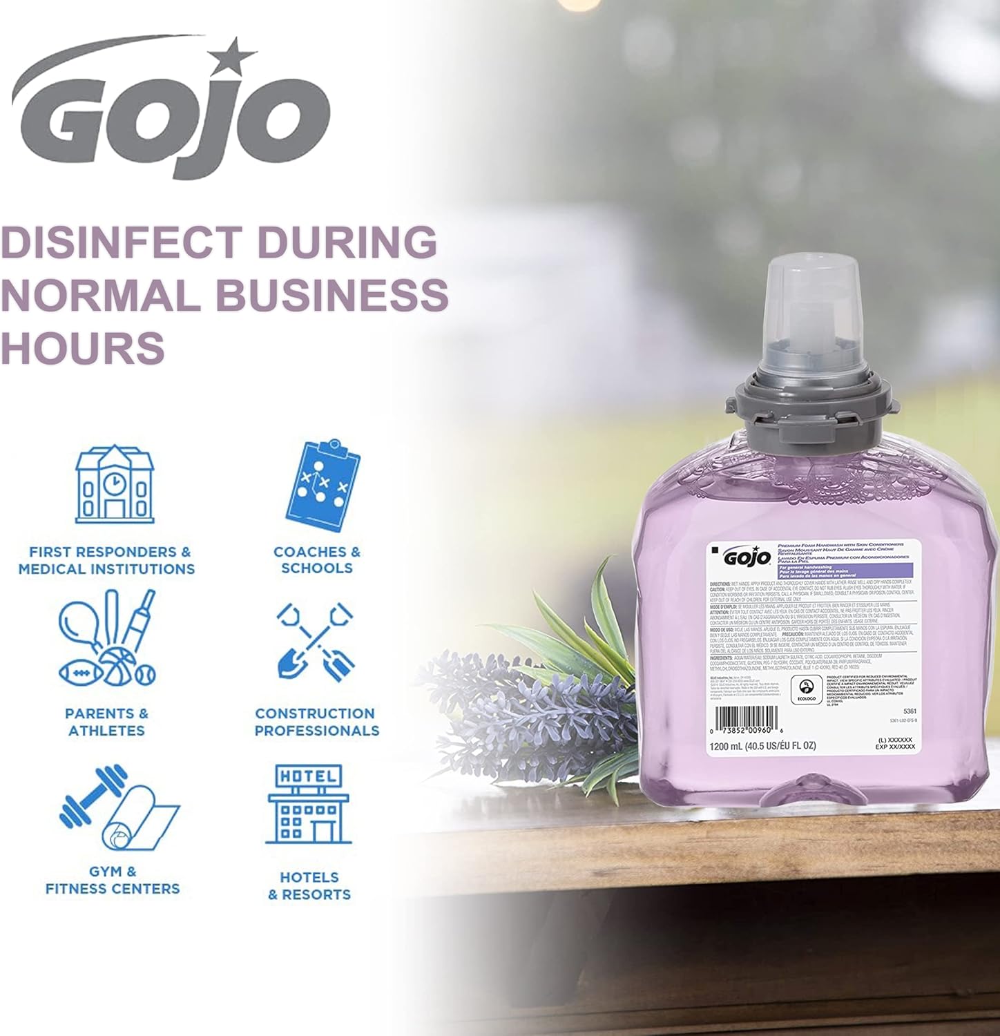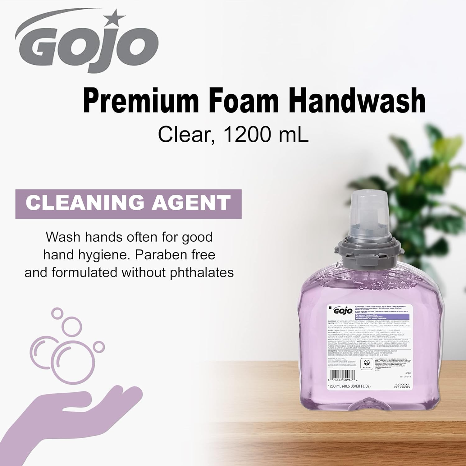 Includes: 2 – 1200 mL GOJO Premium Foam Hand wash with Skin Conditioners refills, compatible with TFX soap dispensers (2740-12, 2730-12, 2789-12). Dispenser sold separately