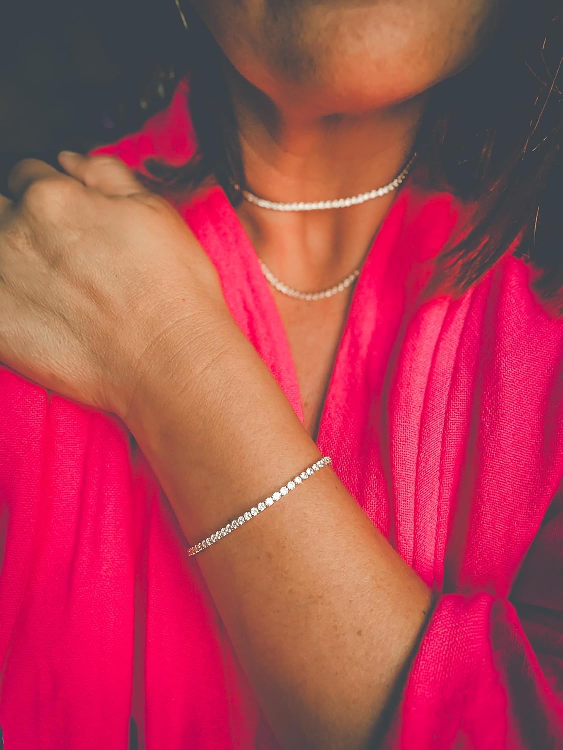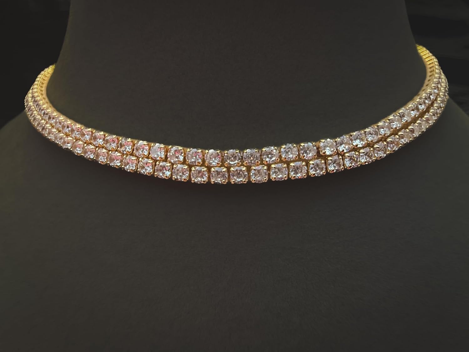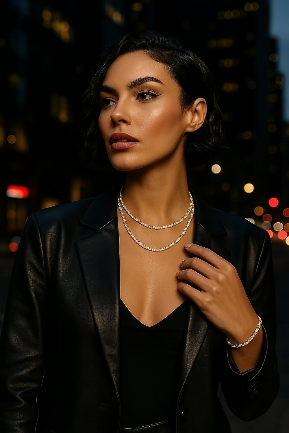 Complete your look with our 3-piece gold tennis jewelry set — featuring a 14″ and 16″ layered necklace, plus a matching 7″ bracelet. Designed for those who love luxury with a modern edge.
