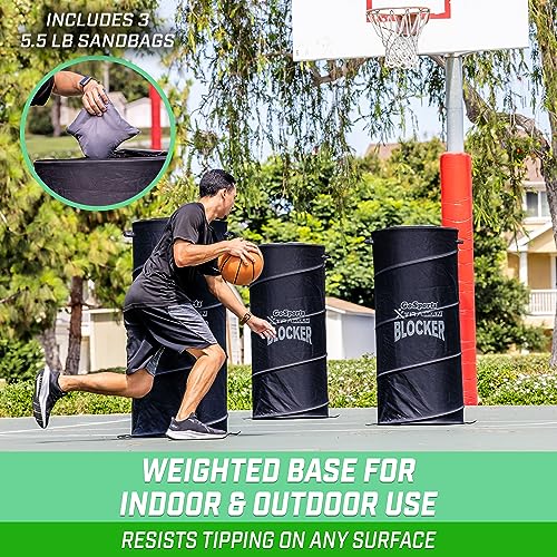 Introducing GoSports XTRAMAN PRO Blockers, premium stand-in defenders for athletes at an intermediate to expert level. Standing at 3 feet 10 inches, these defenders offer a dynamic training experience that enhances some great benefits of standard drills. The entire set includes three collapsible blockers with pre-weighted bases for stability, accompanied by a convenient carry case and instructional drills. Constructed from durable materials, such as robust polyester and sturdy steel wire, these premium pop up defenders are designed to resist rigorous drills across more than a few sports like basketball, football, and soccer. Elevate player development by the usage of these blockers to encourage proper footwork and agility on any court or field, both indoors and outdoors. Their collapsible design ensures easy storage in the carry case, making them highly portable. Now take practice at the go with GoSports XTRAMAN PRO Blockers!