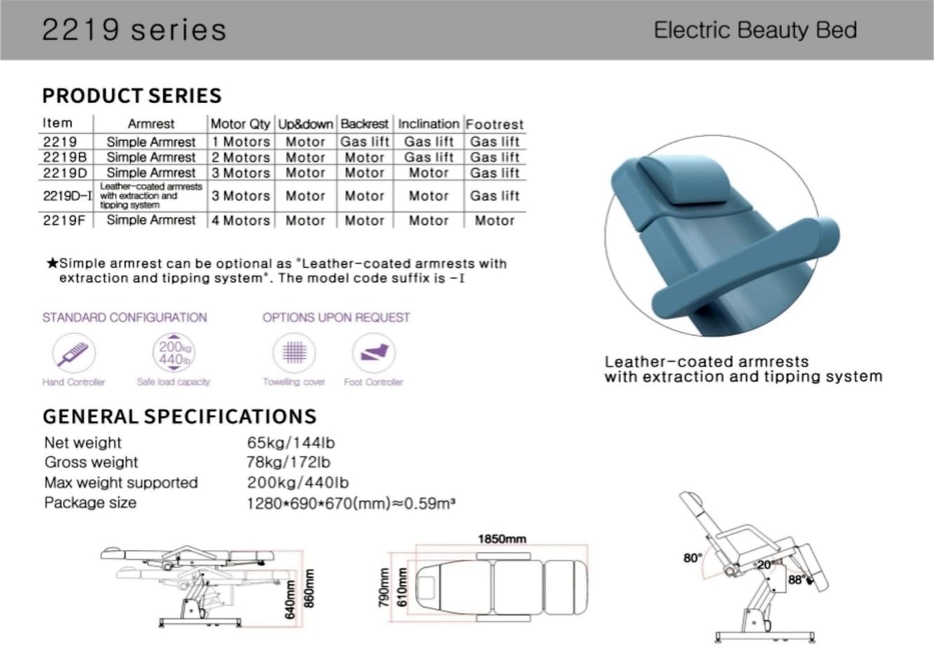 GreenLife 2 Motor Luxury Esthetician Bed Professional Facial Bed Spa Chair Facial Chair Electric Massage Table Equipment for Salon Beauty Spa Care Treatment Silverfox 2219B (Light Grey)